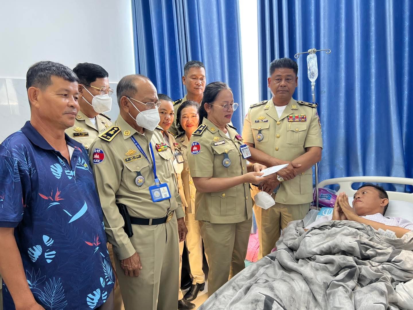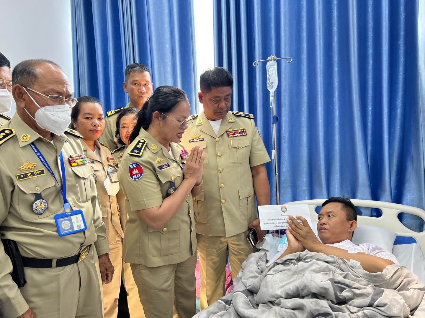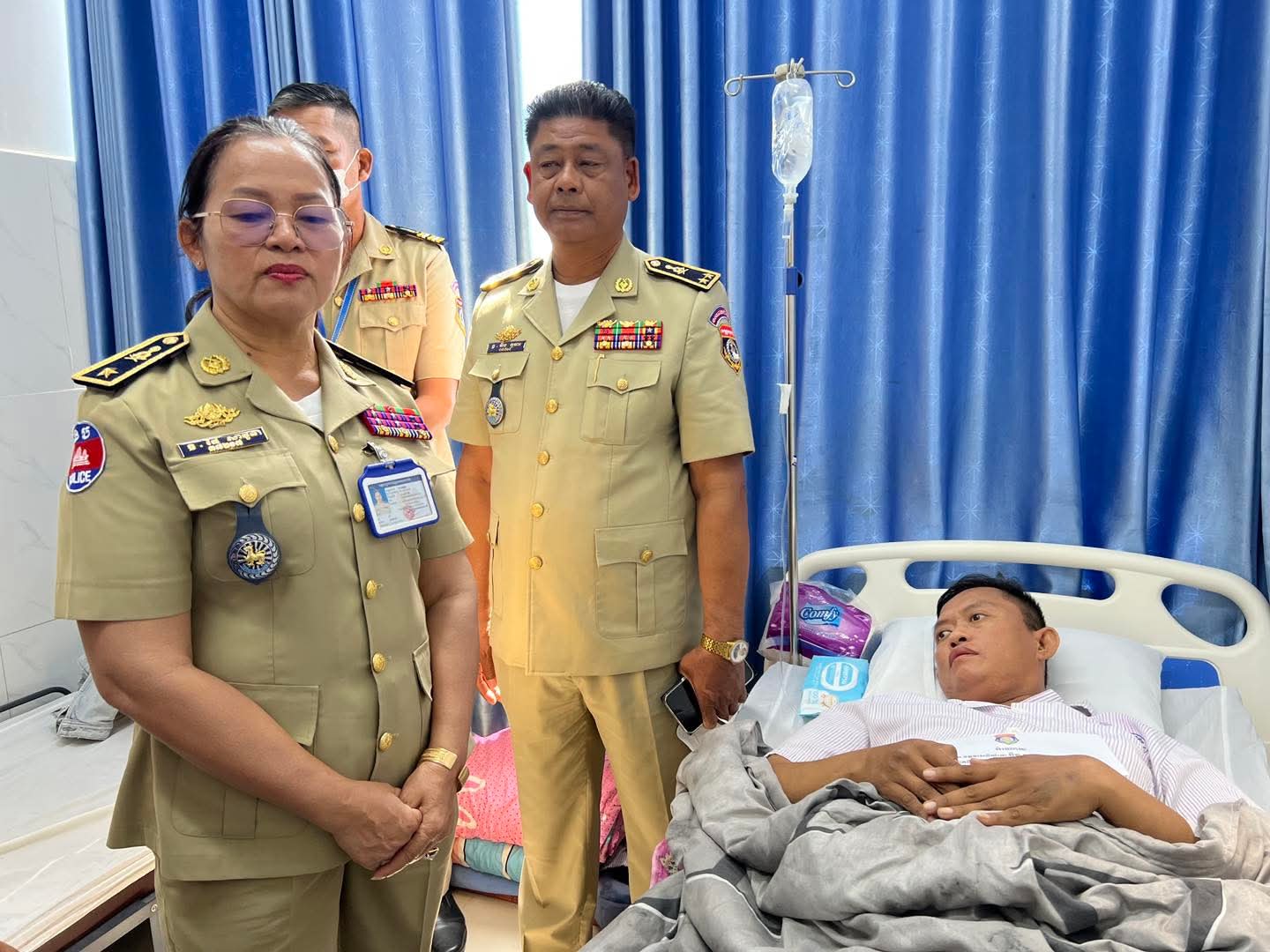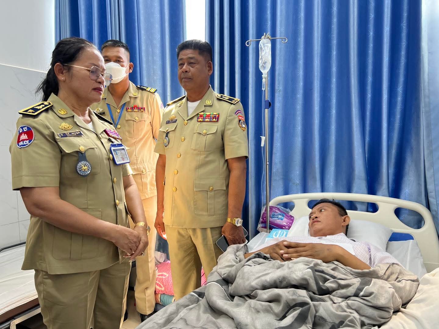 រាជធានីភ្នំពេញ ៖ ដោយអនុវត្តតាមអនុសាសន៍ និងការយកចិត្តទុកដាក់ជាប្រចាំពី ឯកឧត្តម នាយឧត្តមសេនីយ៍ ស ថេត អគ្គស្នងការនគរបាលជាតិ ក្នុងព្រឹកថ្ងៃទី២៦ ខែវិច្ឆិកា ឆ្នាំ២០២៥ នេះ លោកឧត្តមសេនីយ៍ទោ ឆឹង កុមារ ប្រធានអង្គភាពតម្រួតបទបញ្ជា និងលោកស្រី ឧត្តមសេនីយ៍ត្រី ផៃ សាវួន អនុប្រធានអង្គភាព និងជាប្រធានក្រុមការងារយេនឌ័រ បានអញ្ជើញដឹកនាំក្រុមការងារចុះសួរសុខទុក្ខ លោកអនុសេនីយ៍ឯក ជា សត្យា ដែលកំពុងសម្រាកព្យាបាលបណ្តោះអាសន្នក្រោយវះកាត់សន្លាក់ត្រគាក ក្នុងមន្ទីរពេទ្យអង្គឌួង។